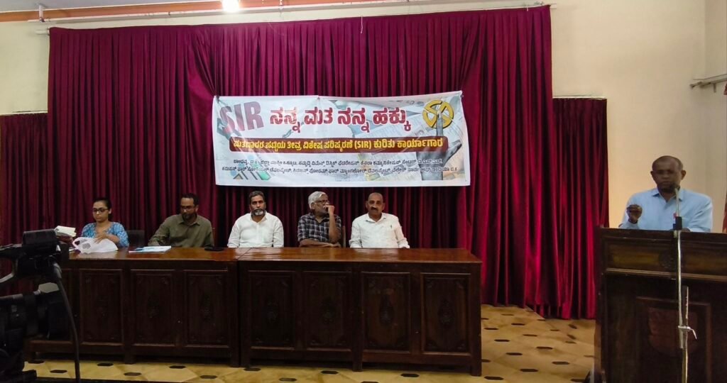 ಬಾಂಧವ್ಯ, ಸಮೃದ್ಧಿ, ದ.ಕ. ಜಿಲ್ಲಾ ಮುಸ್ಲಿಂ ಒಕ್ಕೂಟ, ವಿಮೆನ್ ಡಿಸ್ಟ್ರಿಕ್ಟ್ ಫೆಡರೇಶನ್, ಕೆನರಾ ಕಮ್ಯುನಿಕೇಶನ್ ಸೆಂಟರ್, ಡಿಎಸ್ಎಸ್, ಕಮಿಷನ್ ಫಾರ್ ಸೋಶಿಯಲ್ ಡೆವಲಪ್ಮೆಂಟ್, ಸಿಟಿಜನ್ ಫಾರ್ ಮ್ಯಾಂಗಲೋರ್ ಡೆವಲಪ್ಮೆಂಟ್, ವೆಲ್ಫೇರ್ ಪಾರ್ಟಿ ಆಫ್ ಇಂಡಿಯಾ ಇವುಗಳ ಸಂಯುಕ್ತ ಆಶ್ರಯದಲ್ಲಿ ನಗರದ ಬಲ್ಮಠ ಸಹೋದಯ ಸಭಾಂಗಣದಲ್ಲಿ ಶನಿವಾರ ನಡೆದ ಮತದಾರರ ಪಟ್ಟಿಯ ‘ನನ್ನ ಮತ ನನ್ನ ಹಕ್ಕು’ ತೀವ್ರ ವಿಶೇಷ ಪರಿಷ್ಕರಣೆ (ಎಸ್ಐಆರ್) ಕುರಿತು ಕಾರ್ಯಾಗಾರದಲ್ಲಿ ಅವರು ಉಪನ್ಯಾಸ ನೀಡಿದರು.